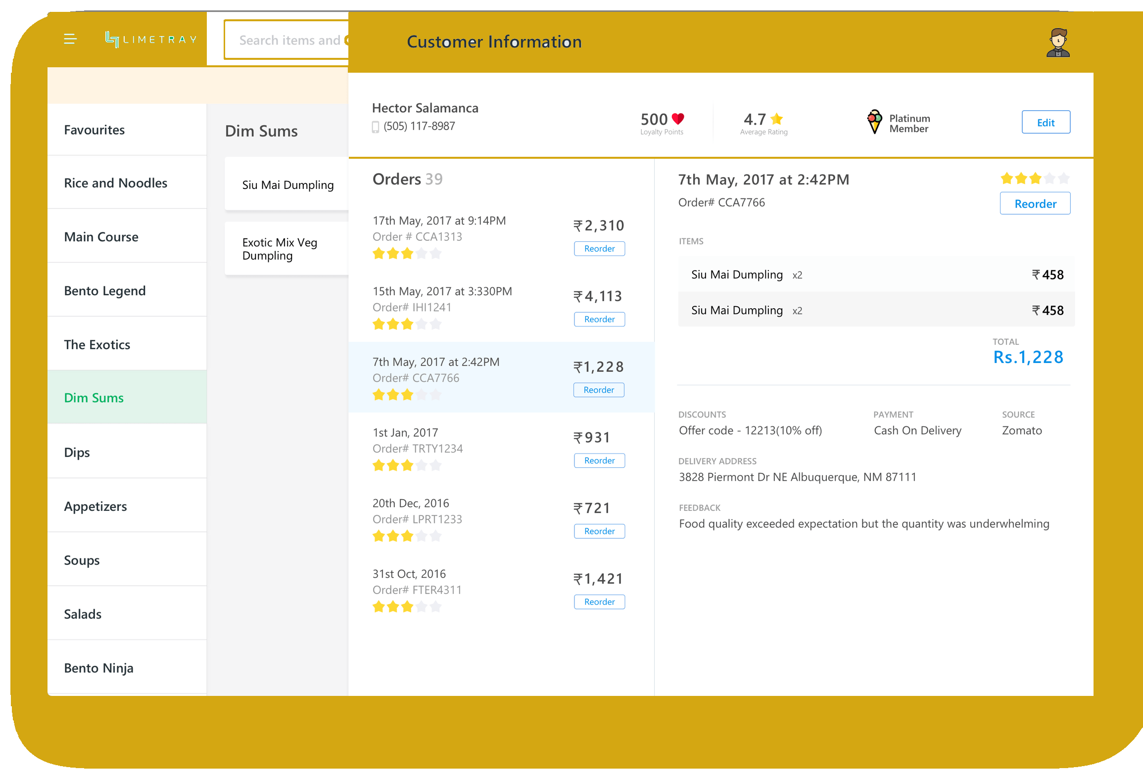- Facility to add modifiers like "Make to 1 by 2", "No Onion and Garlic" and "Less Spicy", etc.