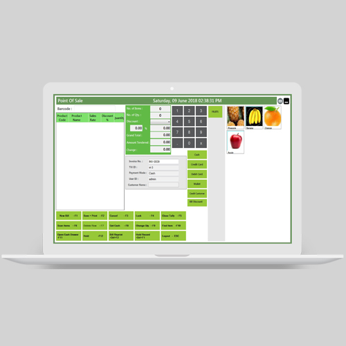 Trade Mate Software Integrated stock Management in Vouchers. Item wise, Manufacturer wise, Category wise and sub category stock categorization. Serial Number and Batch Code tracking of products. Multiple level user security with User activity monitors to view the activity of each user. User Administration to set permissions for Viewing, Modification, Deletion and Creation for Specific user. Password protection for each user. Automatic Backup feature for data security,Pole display, Weighing machine, Cash drawer, Bar Code Scanner, Bar Code Printer and Touch Screen POS (Point of Sale Machines) integration available.